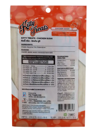 A sushi-inspired treat made with real chicken, offering a nutritious, protein-packed snack for your feline friend.