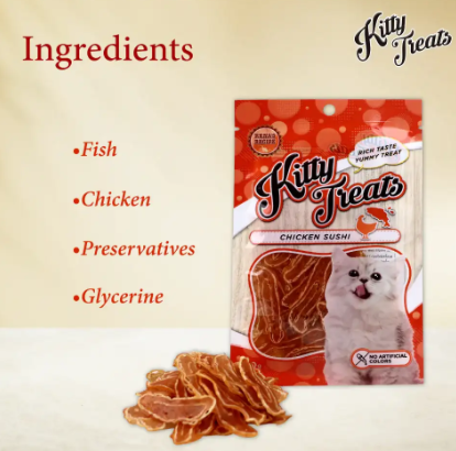 Sushi-inspired chicken treats designed for cats, combining flavor and nutrition to offer a delightful and healthy snack.