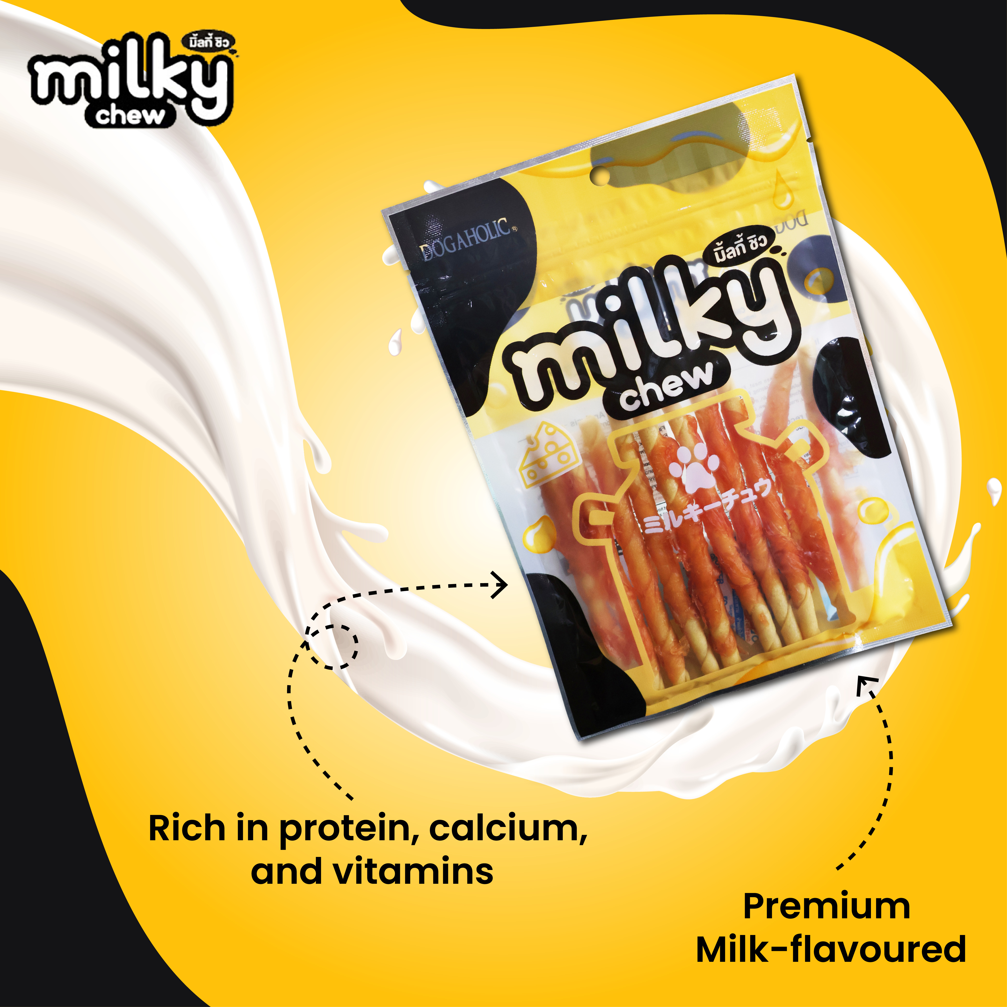 Milky Chews Cheese & Chicken Sticks combine the irresistible flavors of cheese and chicken in a soft, stick-style treat. Packed with protein and essential nutrients, these tasty chews make the perfect reward for your dog’s daily enjoyment and well-being.