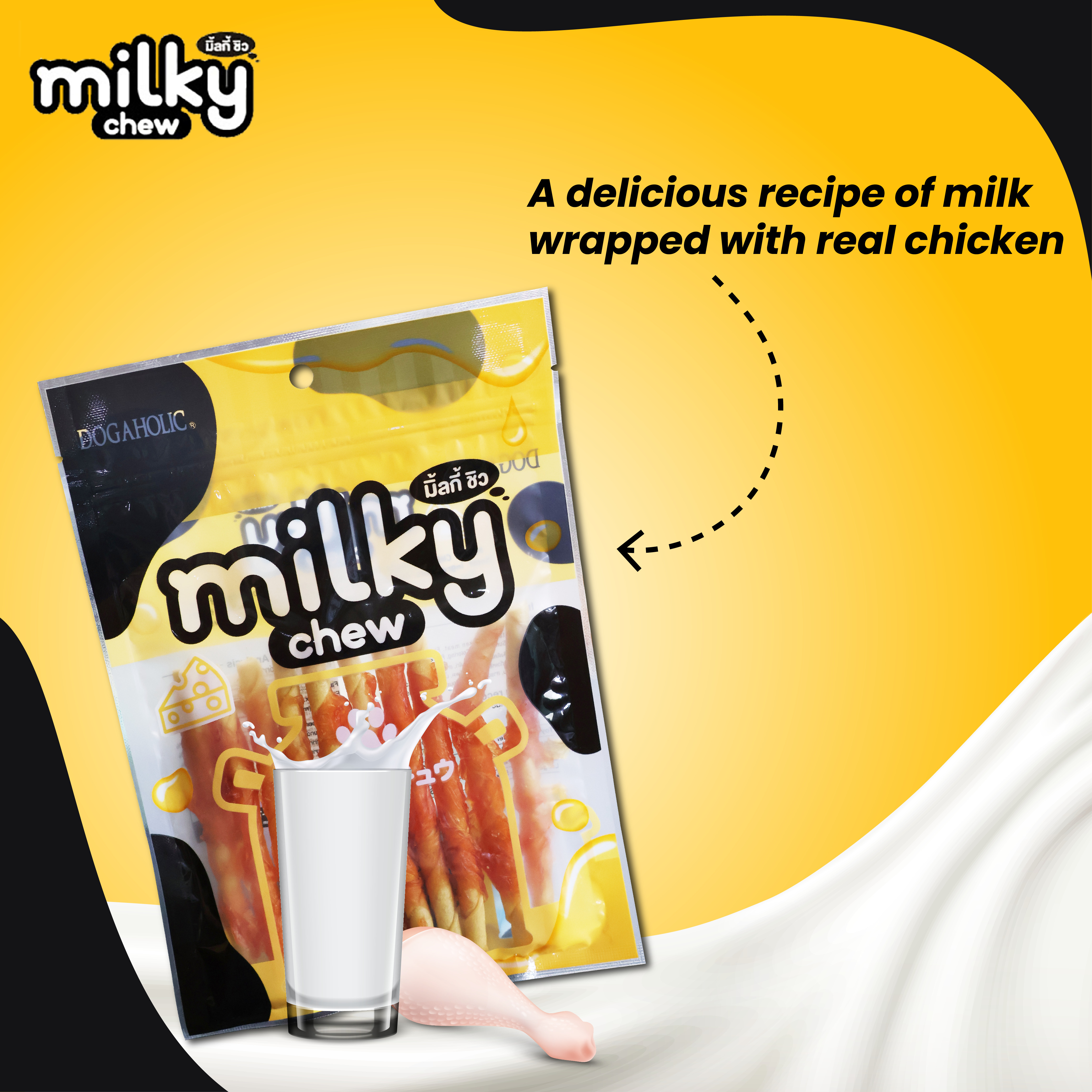 Milky Chew Chicken and Cheese Stick Style is a delicious treat that contains Chicken which is a source of highly digestible protein that helps in improving bones and muscles. It is perfect for dogs of all breeds above the age of 2 months. Dogaholic Milky Chew Chicken and Cheese Stick Style contains